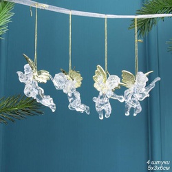 Новогоднее украшение Ангел 4 штуки золотые крылья / GH-16 /уп 240/