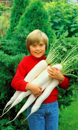 Дайкон МИНОВАСИ — Не уходит в стрелку! Вкус деликатесный, массой до 1 кг! Помогает при болезнях почек, печени, угнетает вредную микрофлору в кишечнике!