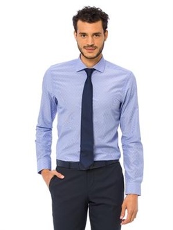 Slim Fit Desenli Uzun Kollu Armürlü Gömlek