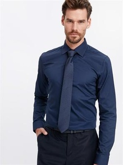 Lacivert Düz Dar Uzun Kollu Gömlek