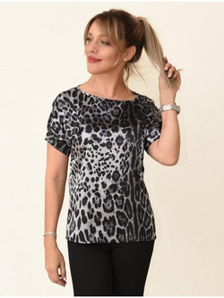 00713 Блузка из атласа серая с принтом лео Цена: 890.00