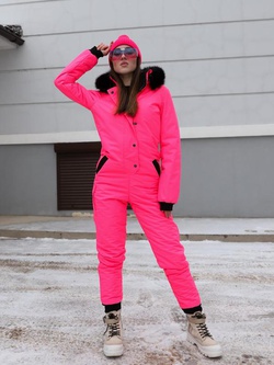 Женский зимний комбинезон. Цвет ярко-розовый.