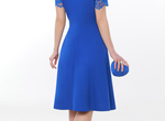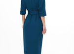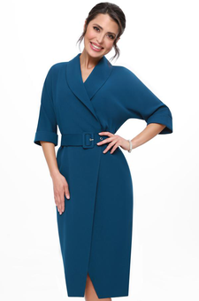 Платье-водолазка трикотажное серо-синего цвета с ремнем