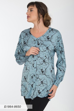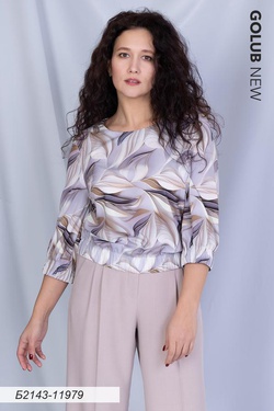 Блузка 2080 вискоза ниагара серо-лаванд листики