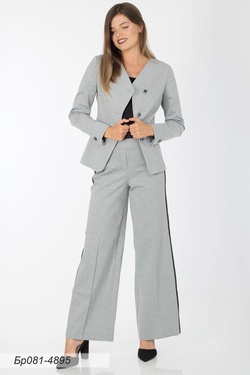 БРЮКИ 081 тр-ж костюмный серый Меланж/ тр-ж черный