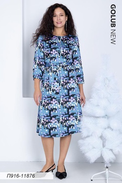 Платье 916 шелк-сатин черно-сирен геометрия