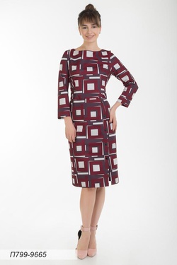 Платье 799 тр-ж костюмн красно-борд квадрат