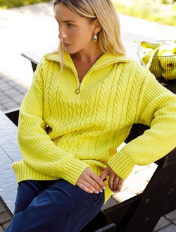 Теплый свитер из хлопка с акрилом и золотистой молнией