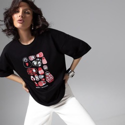 Футболка свободного кроя, Фэшн-идеал (черная с матрешками)