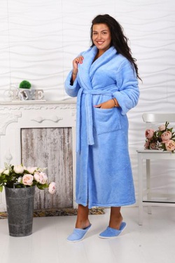 Халат велсофт длинный шаль ХВ-001- нежно голубой