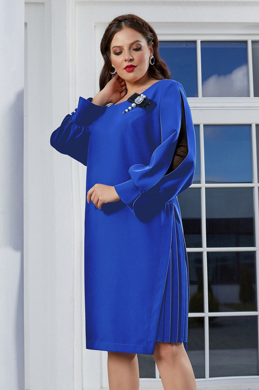 ффектное платье прямого силуэта со складками и дизайнерскими рукавами дополнено съемной брошью ручной работы создаст поистине шикарный и неотразимый модный образ. Брошь «стрекоза» выполнена из японского жемчуга, органзы и кристаллов. Платье прямого силуэта с округлым вырезом и боковыми плиссированными вставками подойдет на все случаи жизни и удовлетворит желания самых искушенных модниц отличная альтернатива маленькому черному платью. Перед оформлен нагрудными вытачками из проймы , спинка со средним швом и талиевыми вытачками застежка на потайную молнию в среднем шве спинки. Еще одна отличительная черта данной модели необычные двойные рукава с широкими манжетами, манжеты украшены пришивными пуговицами. Верхние рукава выполнены из основной ткани, нижние рукава из структурированной сетки.