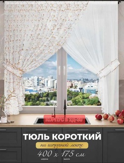 Шторы на кухню. Ламбрекен: 2м Ширина тюль: 2.7м Высота: 1,7м