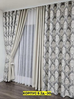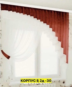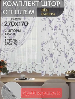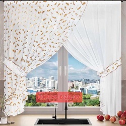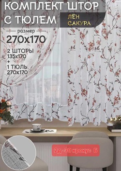 Шторы на кухню ткань лeн турецкий и тюль вуаль. Ширина: 2.7м Высота: 1.7м
