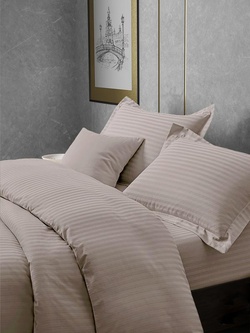 Постельное белье сатин страйп с простыней на резинке в подарочной упаковке - Серебро