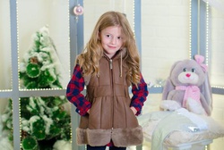 Жилет из дубленки с капюшоном/ 7-9 лет