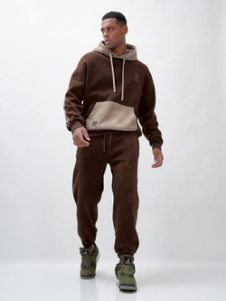 Спортивный костюм мужской демисезонный на флисе коричневого цвета 325K