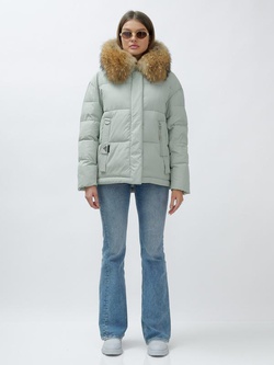 Куртка женская зимняя с мехом енот премиум класса зеленого цвета 3188Z