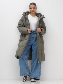 Пальто зимнее утепленное с капюшоном женское темно-серого цвета 7741TC