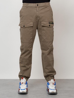 Джинсы карго мужские с накладными карманами коричневого цвета 2422K