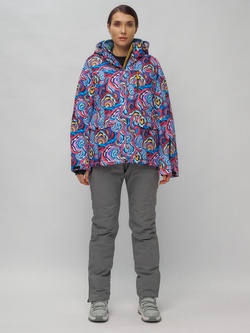 Куртка женская зимняя с капюшоном большого размера фиолетового цвета 1170F