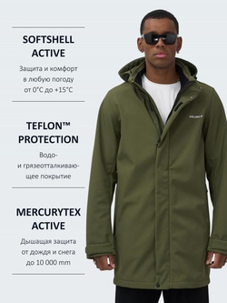 Парка спортивная мужская с капюшоном softshell цвета хаки 9565Kh