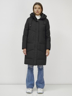 Пальто зимнее утепленное с капюшоном женское черного цвета 7741Ch