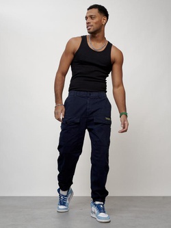 Джинсы карго мужские с накладными карманами темно-синего цвета 2417TS