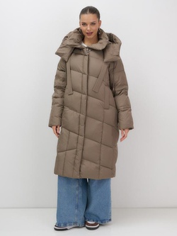 Пальто зимнее утепленное с капюшоном женское светло-коричневого цвета 7748SK