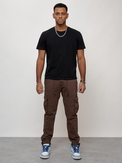Джинсы карго мужские с накладными карманами коричневого цвета 2413K