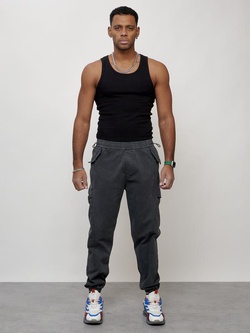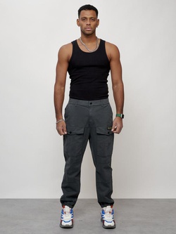 Джинсы карго мужские с накладными карманами темно-серого цвета 2420TC