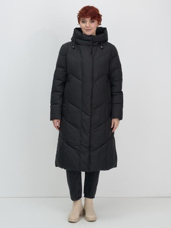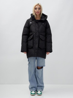 Пальто зимнее утепленное с капюшоном женское черного цвета 7628Ch