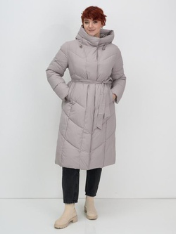 Пальто зимнее утепленное с капюшоном женское серого цвета 7623Sr