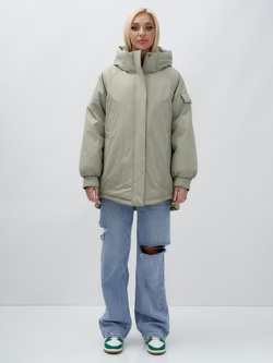 Куртка летучая мышь женская с капюшоном зимняя зеленого цвета 9630Z