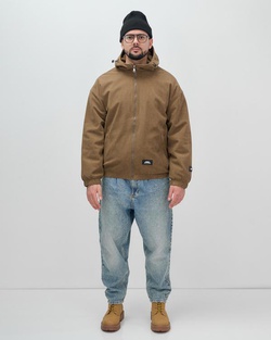 Куртка зимняя женская классическая с капюшоном светло-коричневого цвета 7671SK