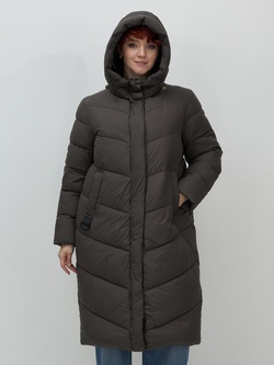 Пальто зимнее утепленное с капюшоном женское темно-коричневого цвета 7623TK