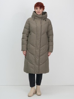 Пальто зимнее утепленное с капюшоном женское светло-коричневого цвета 7628SK