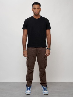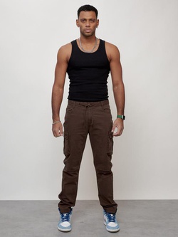 Джинсы карго мужские с накладными карманами коричневого цвета 2421K