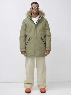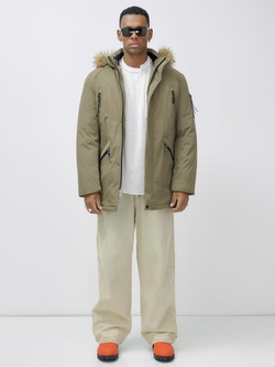 Парка мужская зимняя удлиненная с мехом цвета хаки 999Kh