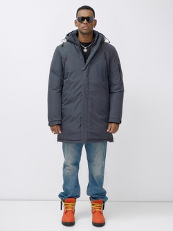 Парка мужская зимняя удлиненная темно-серого цвета 8385TC