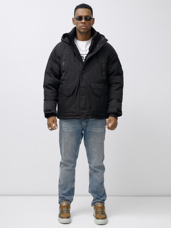 Куртка спортивная мужская зимняя с капюшоном черного цвета 25321Ch