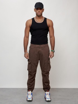 Джинсы карго мужские с накладными карманами коричневого цвета 2428K