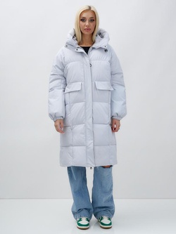 Куртка летучая мышь женская с капюшоном зимняя светло-серого цвета 9621SS