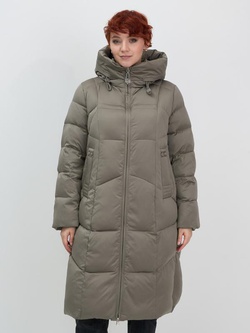 Пальто зимнее утепленное с капюшоном женское зеленого цвета 7702Z
