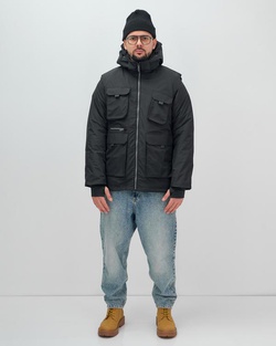 Куртка - жилетка трансформер 2 в 1 мужская зимняя черного цвета 2409Ch