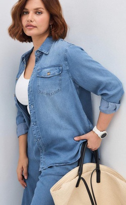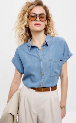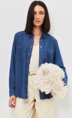 Рубашка женская джинсовая с длинным рукавом P312-0310-1 синяя