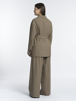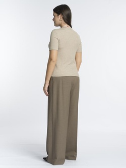Укороченное пальто из шерстяной ткани с вязаным воротником