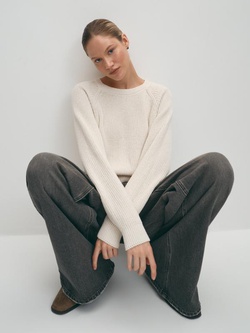 Вязаный джемпер из хлопка с рукавом реглан-погон