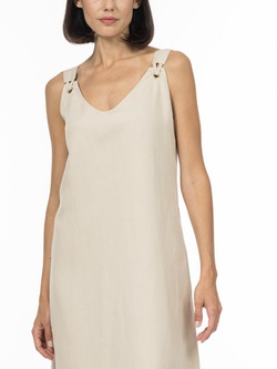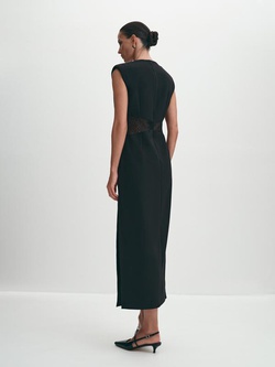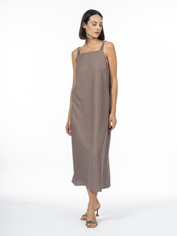 Платье с вискозой и шерстью на бретелях с высоким разрезом