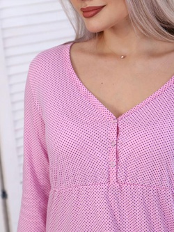 Сорочка кулирка с рукавом ЕВА-2 С-609 горох розовый