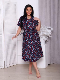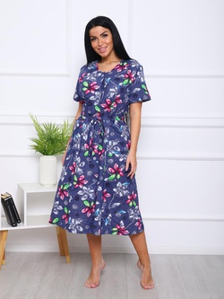 Халат кулирка на пуговицах ХТ-014 полянка синяя